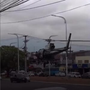 Helicóptero da Polícia pousa em avenida durante operação após assalto na Cohab em São Luís