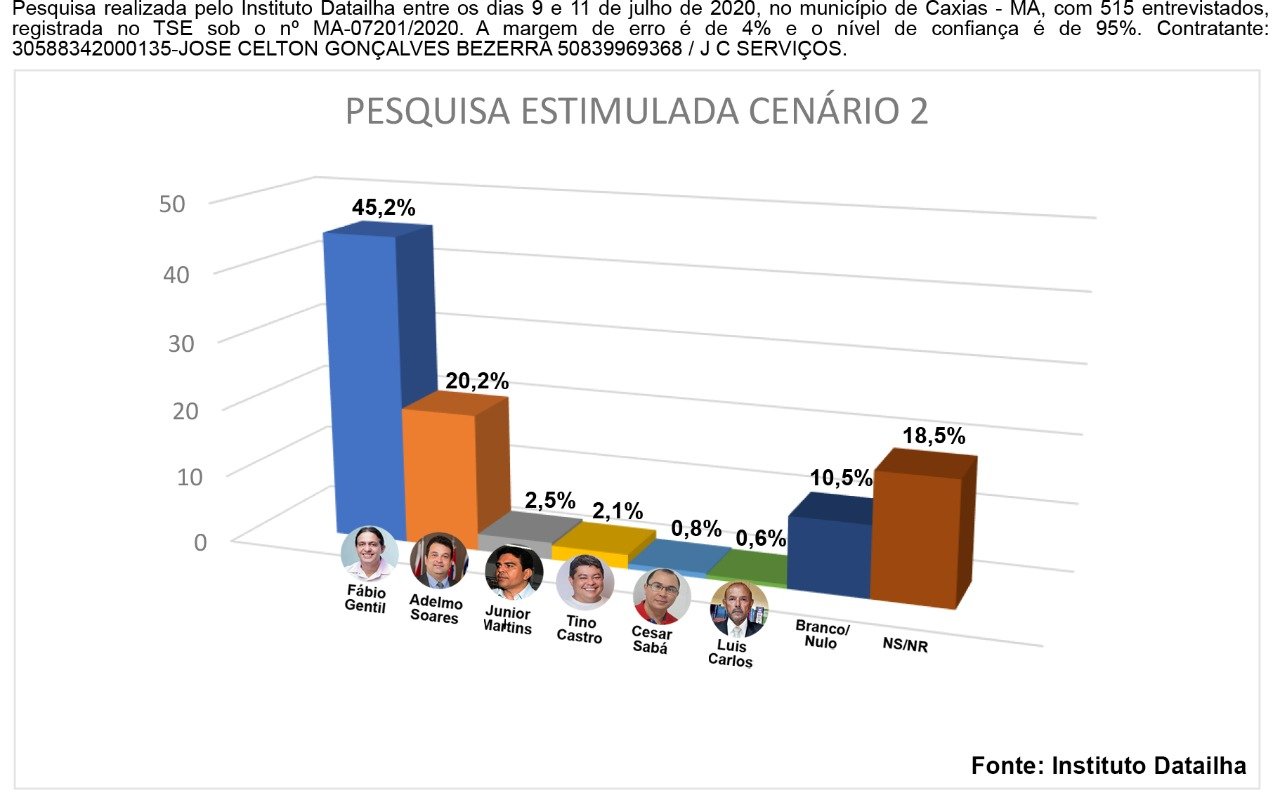Pesquisa realizada pelo Instituto DataIlha entre os dias 9 e 11 de julho com 515 entrevistados e registrada no TSE sob o Nº MA-07201/2020. A margem de erro é de 4% e o nível de confiança é de 95%.