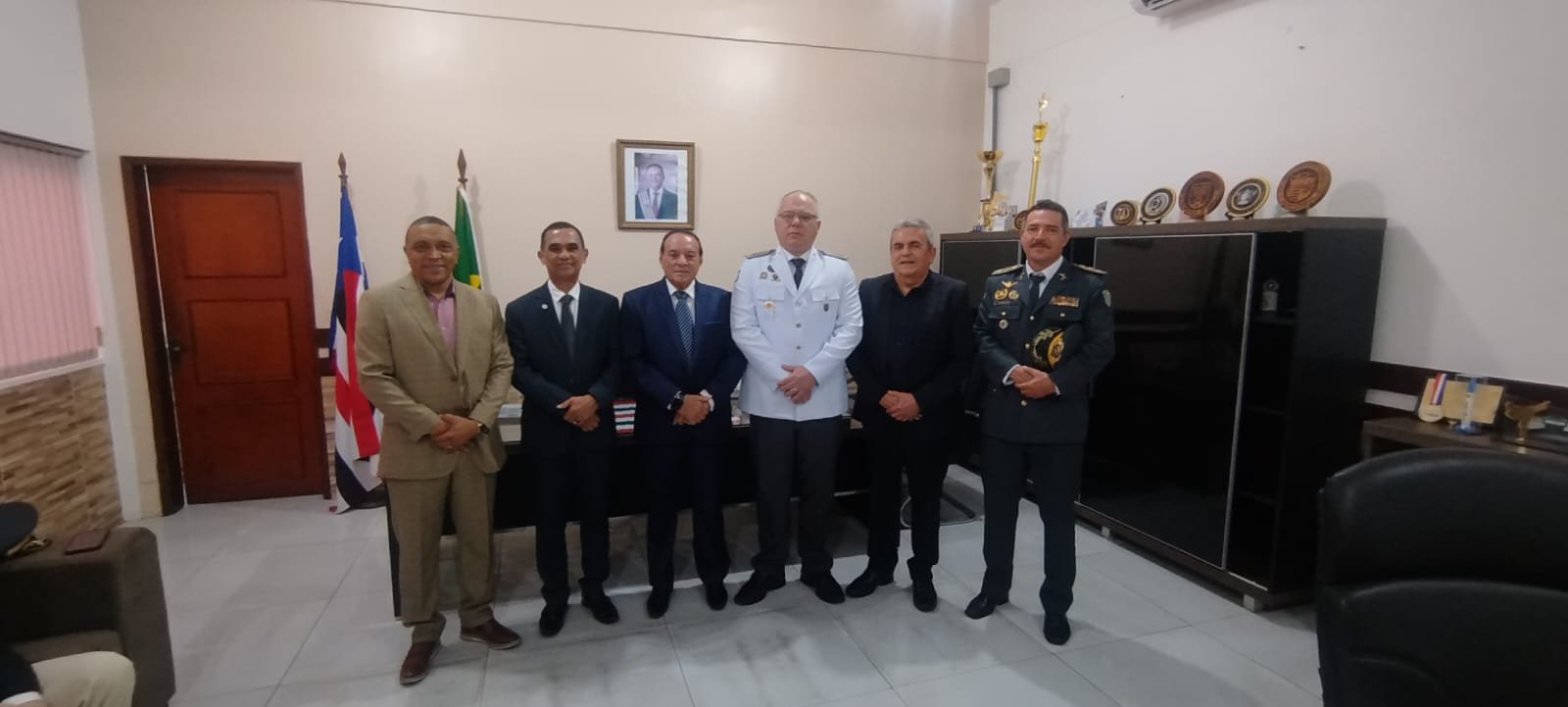 O comandante-geral da PMMA, coronel Pitágoras, recepcionou os convidados em seu gabinete, reforçando o compromisso da corporação com a valorização da história e da tropa.