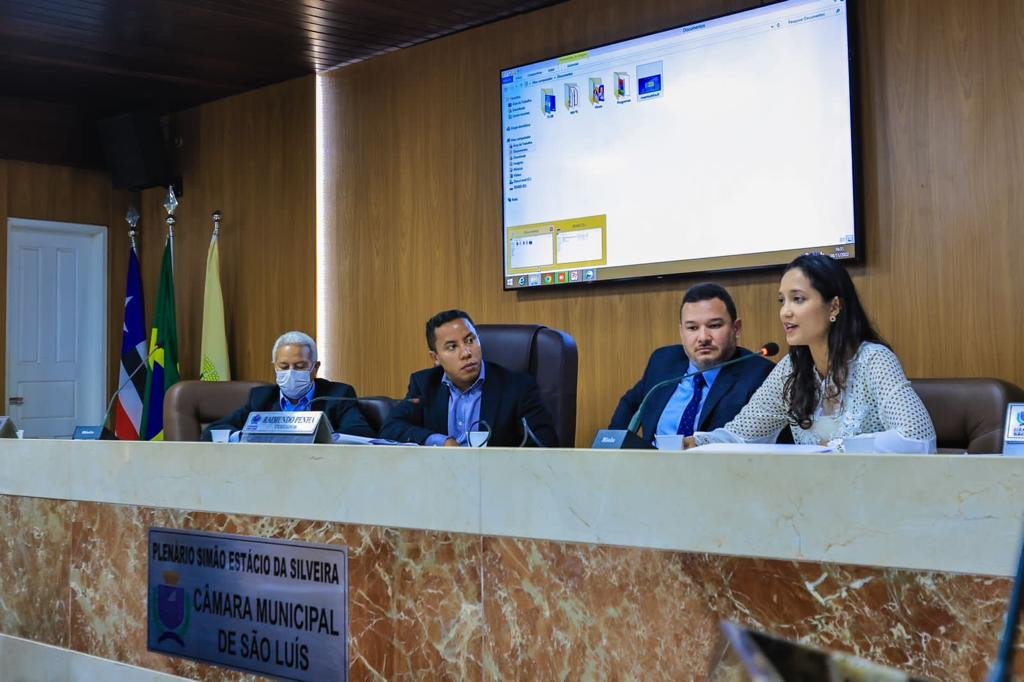 Atendendo pedido das Comissões de Justiça; Educação; e Orçamento da Câmara Municipal de São Luís, os secretários municipais Simão Cirineu (Planejamento), Enéas Fernandes (Governo) e Caroline Marques Salgado (Educação) participaram de uma reunião conjunta das três comissões no plenário Simão Estácio da Silveira.