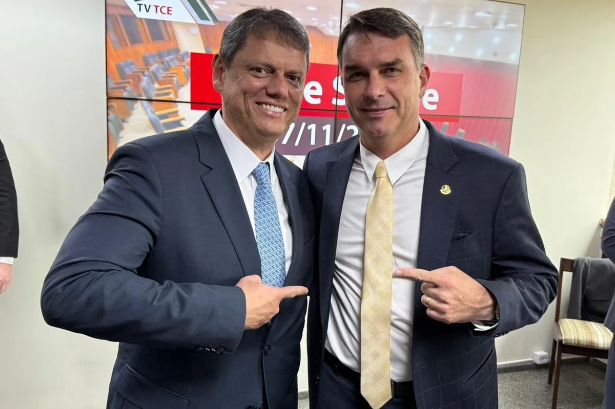 O senador Flávio Bolsonaro (PL) agradeceu a Tarcísio de Freitas (Republicanos), nesta quinta-feira (18/12), após o governador manifestar novamente o apoio para as eleições presidenciais do ano que vem.