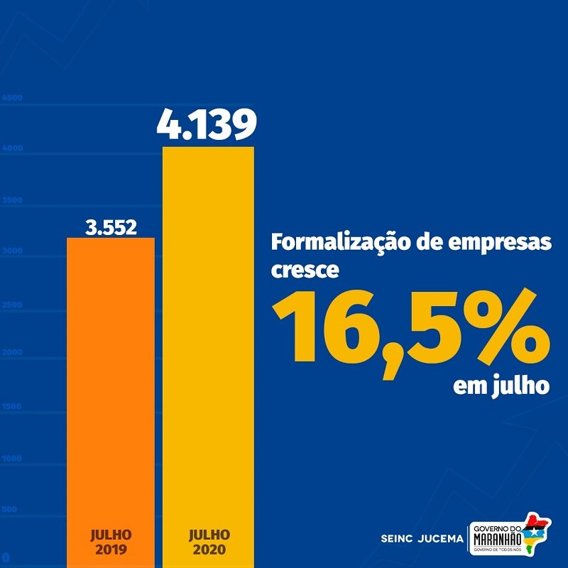 Mesmo com a pandemia do Covid-19, o número de empresas abertas no Maranhão chegou a 4.139 registros em julho e é o maior da série histórica, segundo dados da Junta Comercial do Maranhão (Jucema). Ao ser comparado com o mesmo período do ano passado, o crescimento é de 16,5% (3.552 formalizações jul/2019).