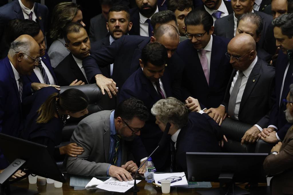 Por mais de trinta horas, a oposição paralisou os trabalhos da Câmara. Os deputados exigiam que fossem pautados dois temas: a anistia aos envolvidos nos atos de 8 de janeiro e o fim do foro privilegiado.