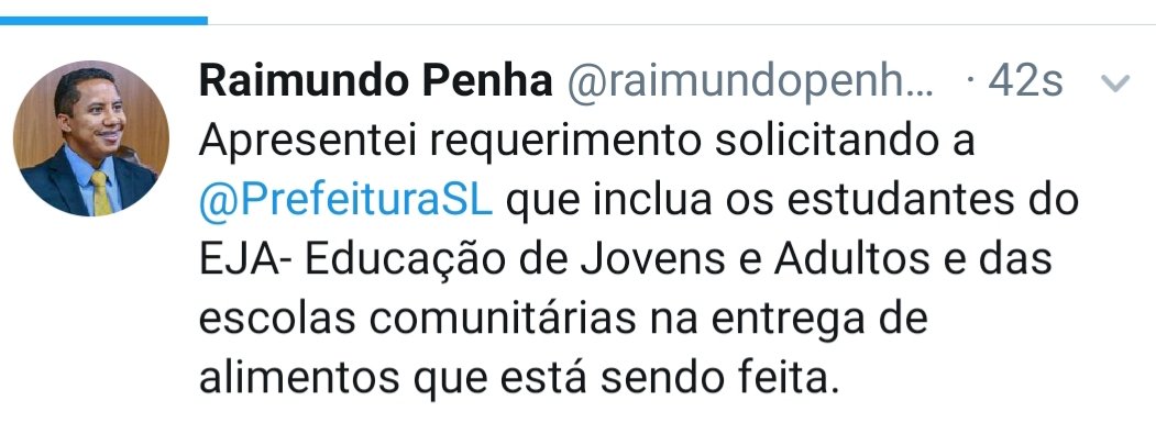 O vereador Raimundo Penha (PDT) protocolou no sistema eletrônico da Câmara Municipal requerimento solicitando que a Prefeitura de São Luís, através da SEMED, inclua na doação de cestas de alimentação alunos de escolas comunitárias e os inscritos na Educação de Jovens e Adultos (EJA).