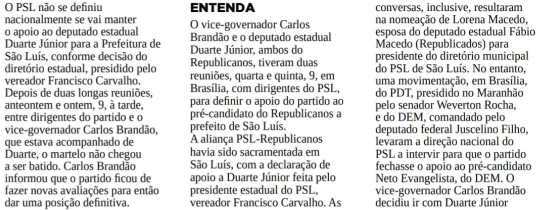 Matéria veiculada pelo Jornal Pequeno, nesta sexta-feira (10), diz que o PSL não definiu apoio ao deputado Duarte Jr. (Republicanos) para a disputa da Prefeitura de São Luís e o partido está próximo de fechar com o deputado Neto Evangelista, do DEM.
