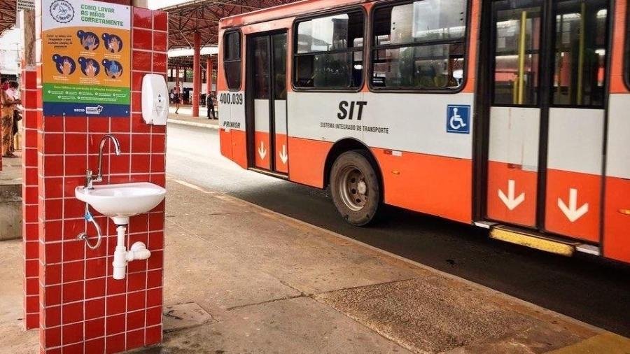 A medida está sendo implantada em etapas. Na primeira, as pias, com sabonete líquido e orientações para a higiene das mãos, foram disponibilizadas para a população em 10 pontos.